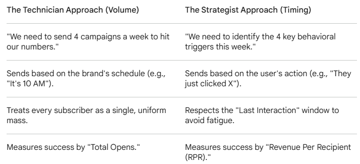 If you’re tired of "batching and blasting" and want to see how behavioral triggers can do the heavy lifting for you, would you like me to map out a custom Timing Logic Flow for your top three products?